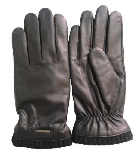 HERRE - NEW CLASSIC - Sort lammeskind m/strikkant -foret m/lambswool TILBUD Kr. 449,00,-